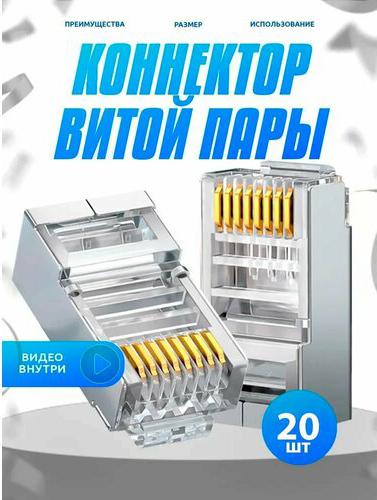 Характеристики Ripo Коннектор RJ-45 (8P8C) Cat.5e FTP 20шт 003-400022/20