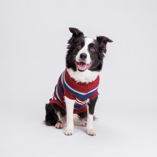 Petmax Свитер полосатый для собак, 55 см, бордовый