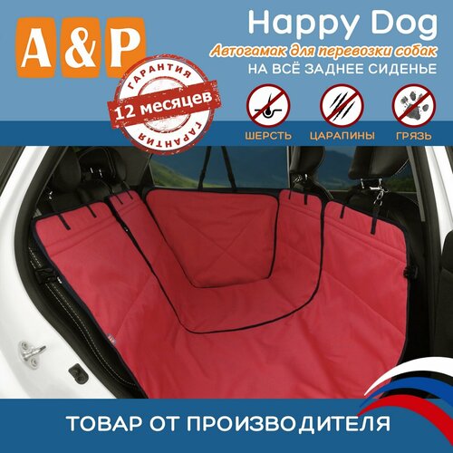 A&P Автогамак-трансформер Happy Dog, заднее сиденье, красный с черным